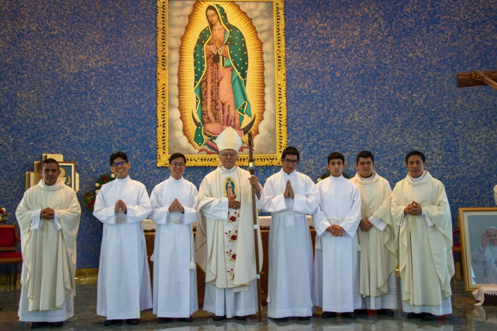 El pastor impuso las vestiduras litúrgicas a Juan Diego Luna Vásquez, Jean Paul Vega Carbajal, Alejandro Emilio Torres Yon y Miguel Eduardo Miranda Pérez, quienes cursan el primer año de Filosofía en esta casa de formación sacerdotal.