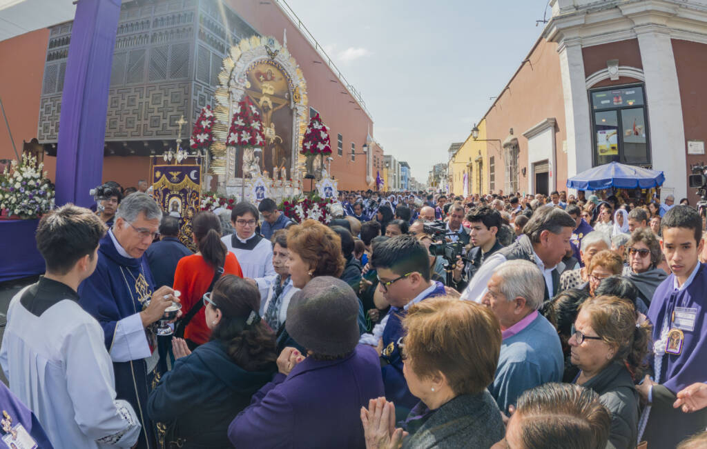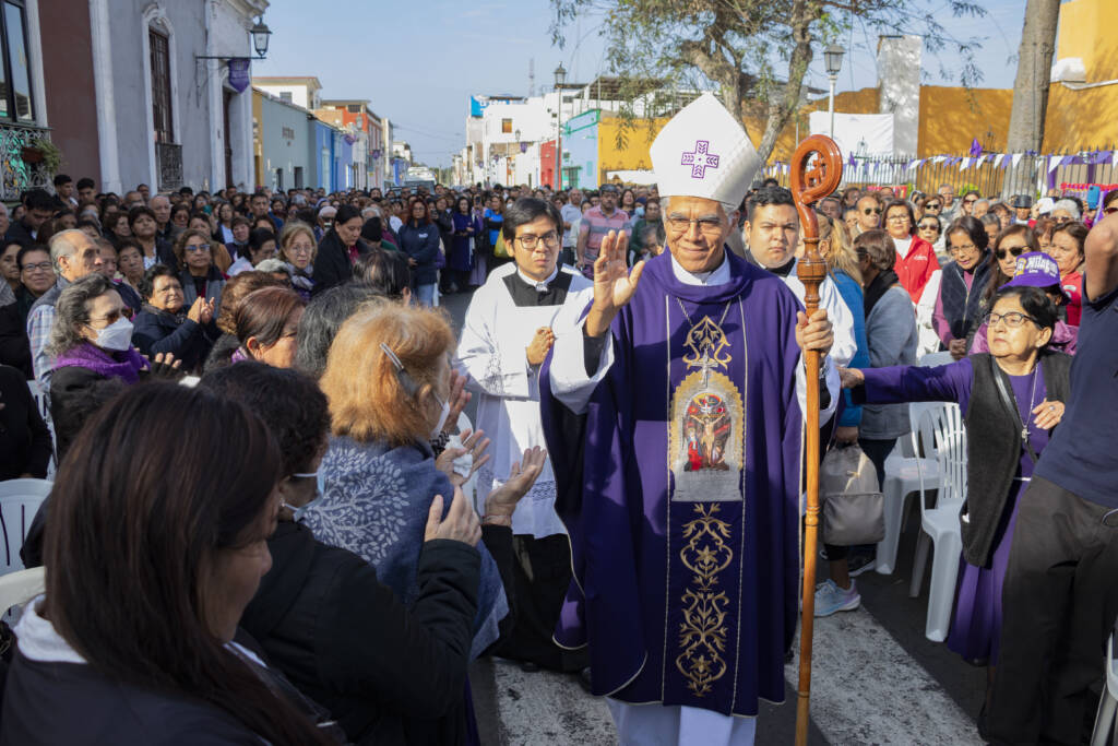 En Trujillo, en el día central de la festividad del Señor de los Milagros, los fieles acompañaron en procesión al Cristo de Pachacamilla, orando por todas las familias y por la paz en el Perú, y agradeciéndole por derramar sus bendiciones.