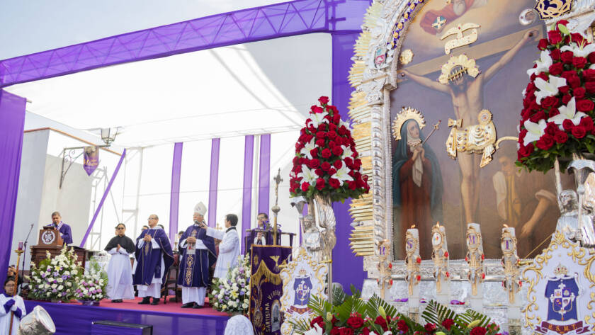 En Trujillo, en el día central de la festividad del Señor de los Milagros, los fieles acompañaron en procesión al Cristo de Pachacamilla, orando por todas las familias y por la paz en el Perú, y agradeciéndole por derramar sus bendiciones.