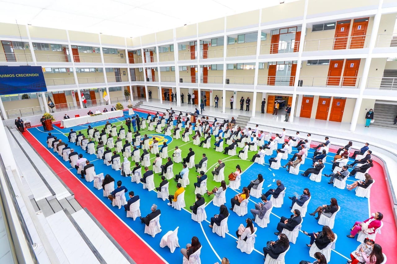 El complejo Santo Toribio de Mogrovejo cuenta con tres pisos. El Fundador y Gran Canciller de la UCT, Mons. Miguel Cabrejos Vidarte, destacó que la infraestructura consolida el crecimiento de la Universidad.