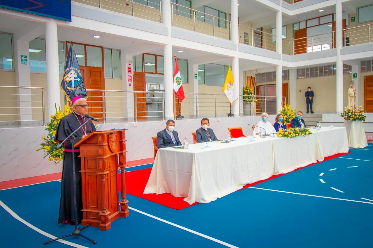 La Universidad Católica de Trujillo Benedicto XVI entregó a la comunidad universitaria el nuevo complejo ‘Santo Toribio de Mogrovejo’. La ceremonia estuvo a cargo del Fundador y Gran Canciller, Mons. Dr. Miguel Cabrejos Vidarte, OFM., Arzobispo de Trujillo, Presidente de la Conferencia Episcopal Peruana y Presidente del CELAM.